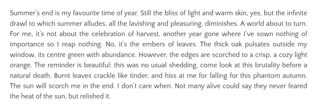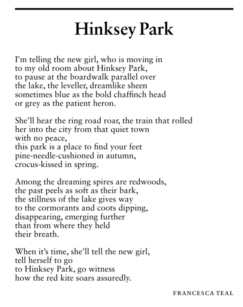 Francesca’s writing spans a distressed seamstress in The Ekphrastic Review, a park’s healing power in Oxford Magazine, Ukrainian summer solstice in The Ash, the world of work as a post-grad in Bitter Melon Review, a footballing Yorkshire lad’s dreams in The Vanity Papers, and the revisiting of a past relationship in reverse in Ghost Light Lit.